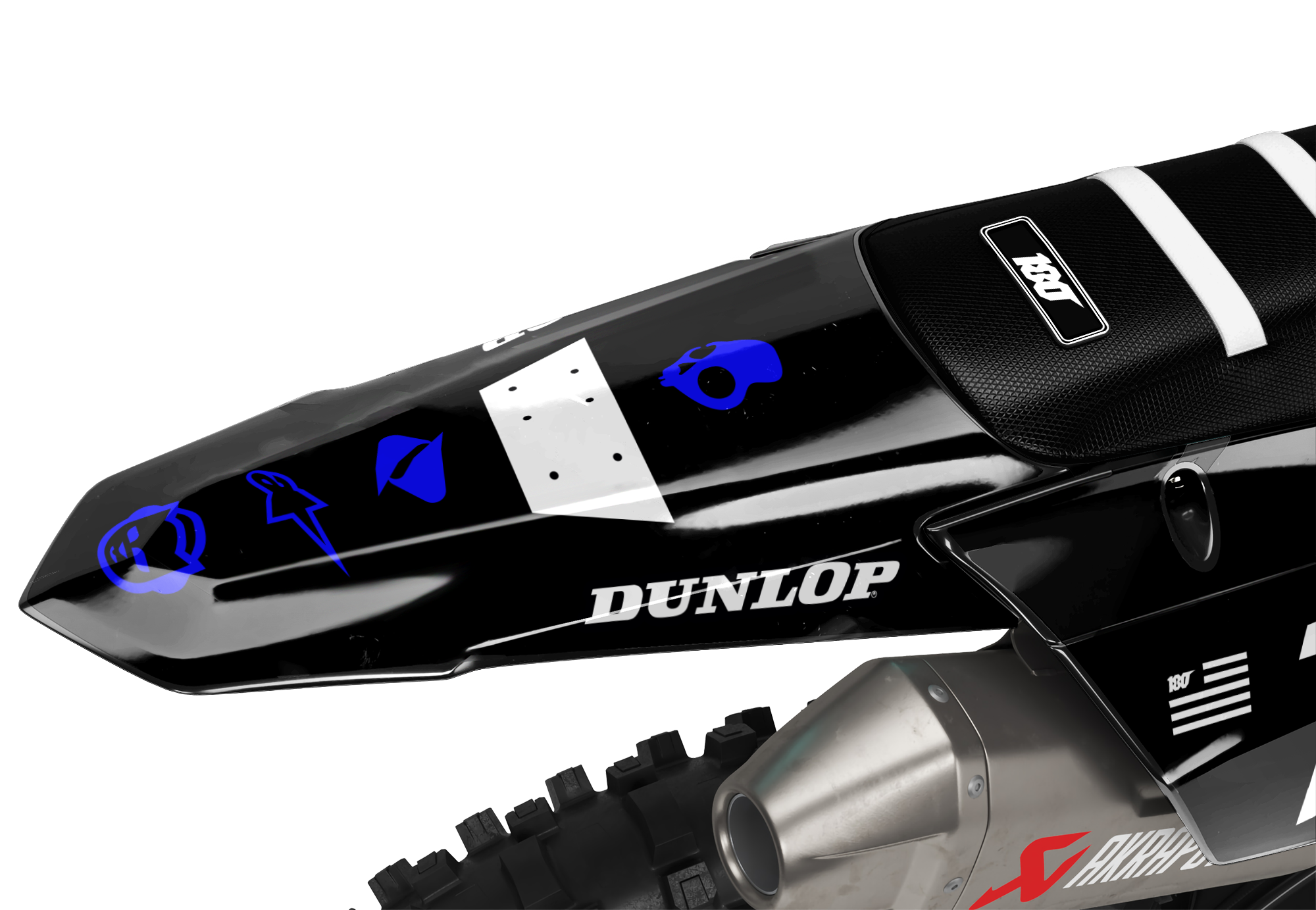 Kit includes: shroud graphics, backgrounds with air box decals, fork guard decals, front fender tip decal, rear fender decal and swing arm decals.